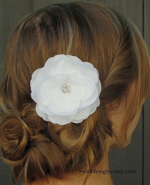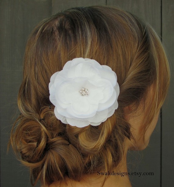 ~~ This beautiful and fluffy Peony Blossom Hair Comb is handmade with Six layers of Silk with some organza layers mixed in and centered with Sparkling Rhinestones. Beautiful and classy, great for Bridal or special events! Most of my customers who purchase these are Brides.