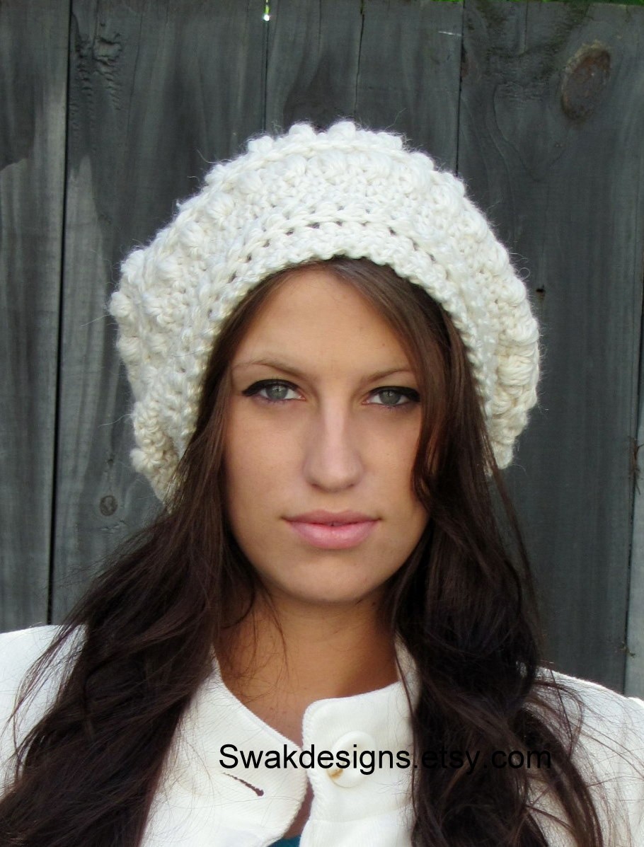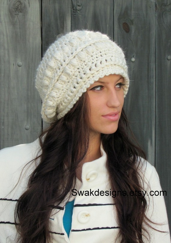 Slouchy Bobble Hat Slouchy Beanie Cap Handmade Knit Cap Alpaca Soft Wool Beanie Winter White or CHOOSE Your color