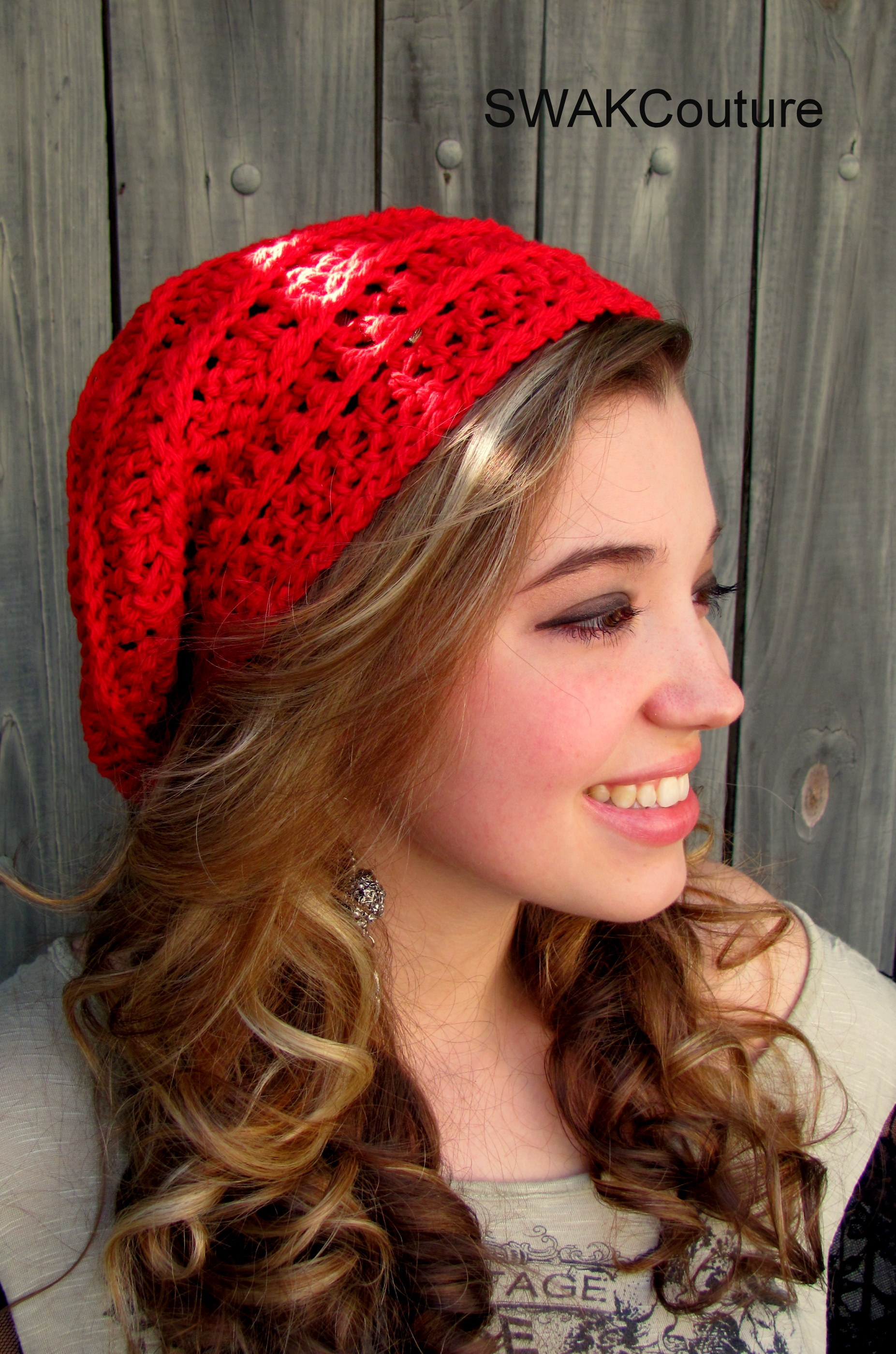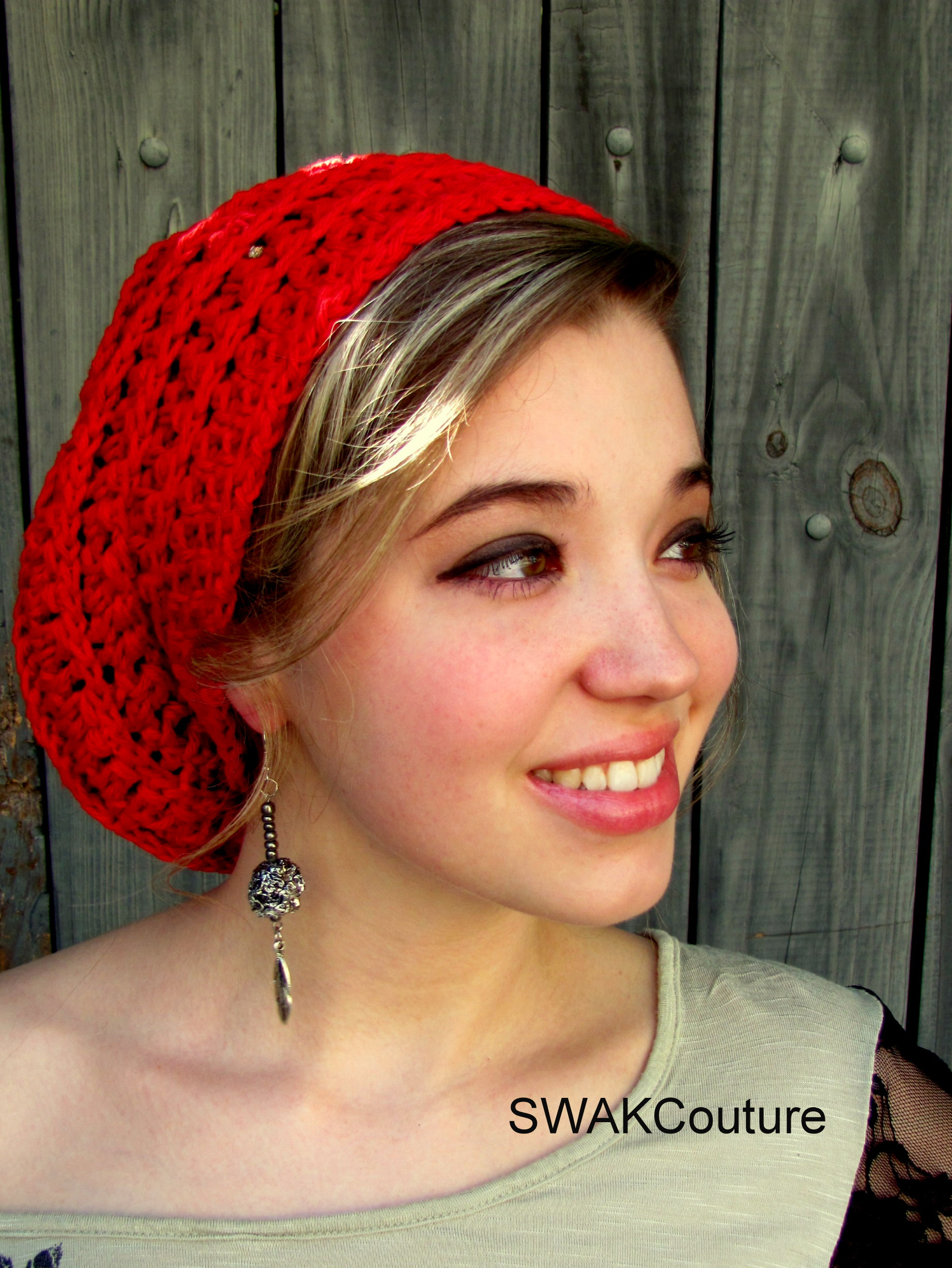 100% Cotton Slouchy Hat - Red or CHOOSE Your color