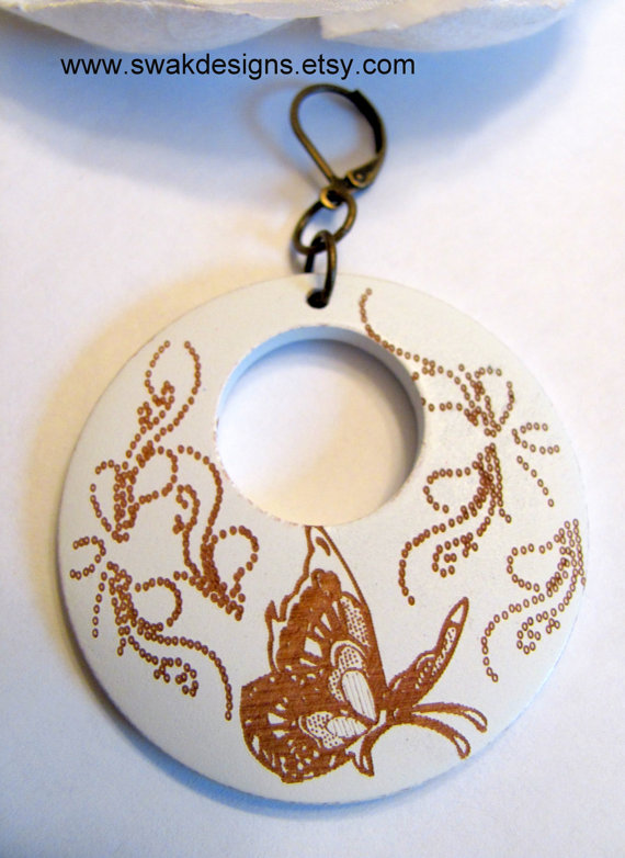 I handmake these lovely Bohemian earrings from wooden circles that have been laser cut and painted.