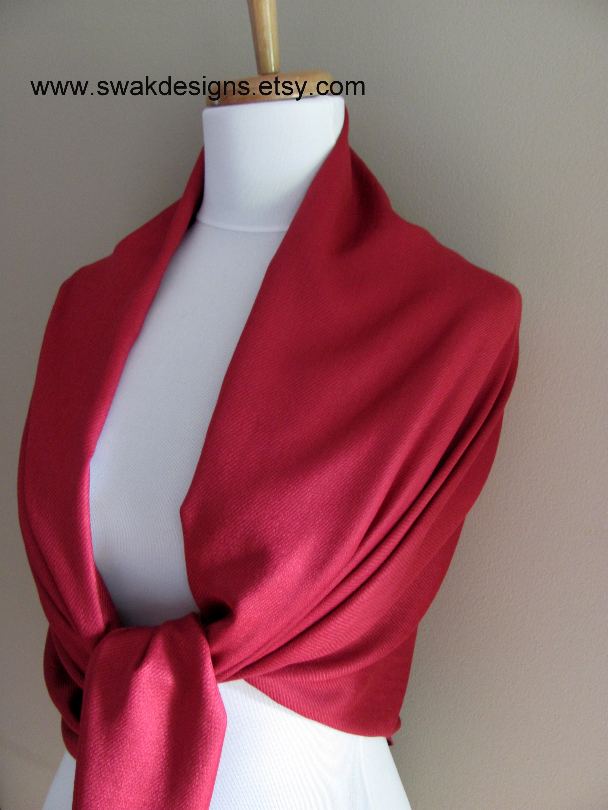 Crimson Red Pashmina Scarf, Wedding Scarf, Bridal Shawl - or CHOOSE Your Color